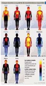La langue française attribue depuis des siècles une manifestation physique à chacune de nos émotions: "la peur au ventre" , "sentir monter la colère" , et des recherches scientifiques ont pu démontrer que cela n'était pas une croyance populaire.